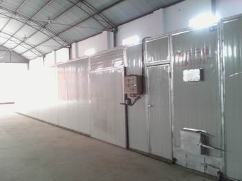 我公司生產的海帶烘干機為隧道式海帶烘干機,烘干隧道型似整體,內分多單元,物料接受溫度由低及高,循序漸進。烘干機工作方式是人工將海帶懸掛在料車上,從進料端進入隧道,在隧道內料車裝滿后便開始循環烘干,出料端出一車干料,進料端進一車濕料,依次循環烘干,在整個烘干過程中,烘干溫度由低到高,因為特殊的通風方式和特殊的海帶懸掛方法,保證海帶平展,不粘連,烘干快,顏色好。晾曬的海帶,無論從質量、色澤與烘干出的海帶無可比擬。